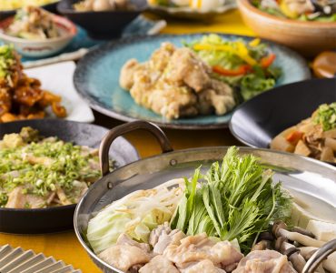 鹿児島県産銘柄鶏の炙りタタキをご用意!鍋は3種類からお選びいただけます!プレミアム飲み放題付き!